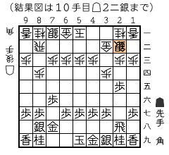 b ・・・疑問手 - 第3図は前述の▲7八金に変えて▲2五歩とした局面です。以下△8五歩と進み、自分だけ飛車先の歩を切れれば優位に立てますが、そうはならないので結局▲7七角と受けることになります(▲2四歩は後述)。そこで△3四歩と角交換を迫るのが、手損をしないための基本となる手順です。結果図の局面から、本格的な角換わりのスタートとなります。